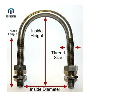 U-bolts are classified by material into carbon steel Q235, Q345 alloy steel, stainless steel 201 304 316, etc.